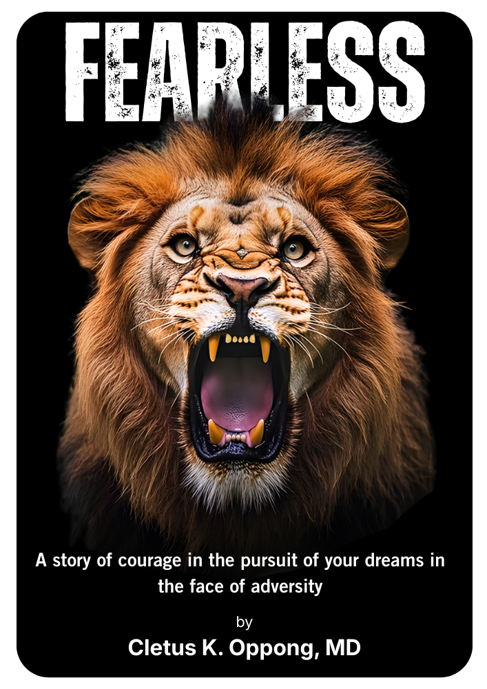In the spirit of that shared resilience, Dr. Oppong is currently authoring two complementary works that explore perseverance, purpose, and the pursuit of equity. Fearless is an autobiographical account tracing his journey toward becoming a physician, detailing the obstacles encountered, the adversity endured, and the determination required to achieve his vision despite formidable barriers. It is both a personal narrative and a reflection on the broader realities faced by many who navigate systems not built for them.